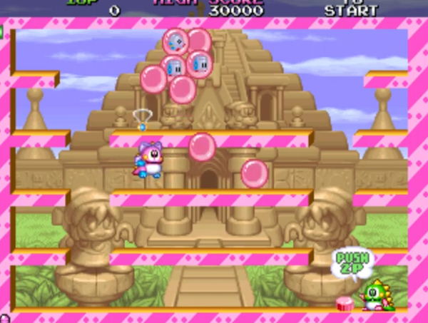 1990년대 후반에 매우 많은 명작들을 출시를 했던 타이토(Taito)에서 개발한 아케이드 플랫폼의 보글보글 2라고 하는 재미있는 추억의 오락실 게임을 플레이를 위에서 진행해 보세요.