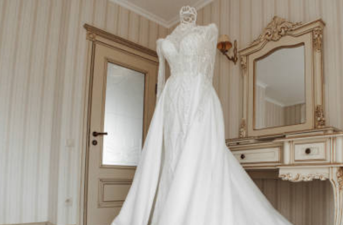 웨딩드레스는 보통 흰색이나 밝은 색상이 많은데, 이는 새로운 시작, 깨끗함, 청결을 의미하기 때문에 이 꿈은 새로운 일을 시작하려는 강한 의지를 나타냅니다.