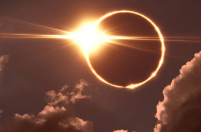 태양이 가려져 일식이 일어나는 꿈은 일시적으로 구름이 가려져 문제나 어려움이 생길 것을 암시합니다.